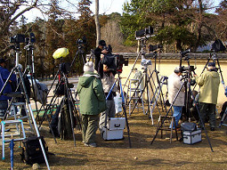 ![]() 東大寺の駐車場後方から、撮影の為 準備をしている風景です。 但し、12日(籠松明)はこの場所では 撮影できません。(平成17年現在) |